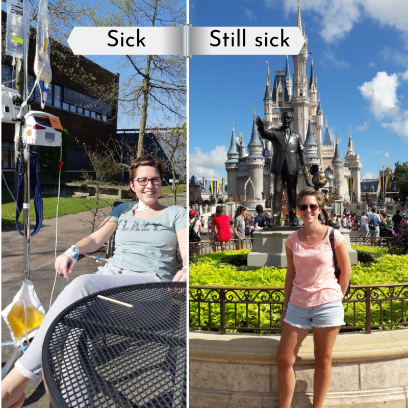 Bijna niemand ziet hoe ik de dag na een feestje (waar ik vaak al eerder van weg ga) alleen maar op de bank of in bed kan liggen om bij te komen, hoe ik een hele dag energie spaar om ’s avonds met vrienden iets af te spreken. Ze zien me wel naar het toilet gaan, maar niet dat ik een katheter nodig heb om te kunnen plassen. Niemand ziet hoe ik mijn port a cath aanprik om mezelf elke avond aan te sluiten aan de TPV, ze zien vaak net wel dat lekkere stukje van een koekje wat ik eet. Het is keuzes maken, energie verdelen en bewust de consequenties van mijn daden accepteren. Ik snap volkomen dat het ingewikkeld is en je het waarschijnlijk niet meteen snapt. Ik zou je willen vragen om er met mij over in gesprek te gaan voordat je er een oordeel over velt. Dan kan ik je proberen uit te leggen waarom ik deze keuzes maak.