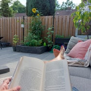 Maar oprecht geeft het lezen me heel veel rust. Het geeft me bijna een vakantie gevoel als ik zo lekker in de tuin zit.