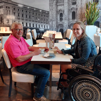 Maar ook probeer ik de medische afspraken te combineren met fijne dingen. We dronken bijvoorbeeld samen een kopje koffie nadat ik in het Radboud in Nijmegen een CT-scan moest laten maken. Het geeft daardoor het gevoel van een dagje weg i.pv. een verplichte rit naar het ziekenhuis. Ik ben dankbaar dat dit ziekenhuis me zo goed opvolgt en me de zorg biedt die ik nodig heb, maar soms breekt het op dat het voor een korte afspraak zo lang rijden is.